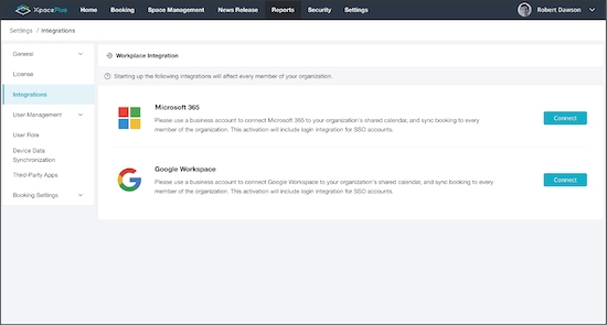 The XpacePlus Platform features a comprehensive set of management functions such as booking, user, space, and device management. Detailed records and reports can help facility managers make better space decisions and management of associated costs.